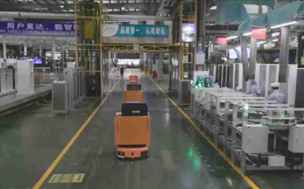 为车载冰箱物流配送打造的智能解决方案,,,,包含产中物流通过潜伏举升AMR搬运至线边,,,,产后成品物流智能仓储,,,,流程包含产中物流智能齐套入库,,,,线边安灯叫料AMR智能配送至线边,,,成品入库、、出库,,通过无人堆高车机器人,,,智能仓储管理替代人工作业管理,,实现更高存储、、更高效率、、更具柔性化的解决方案。。。。