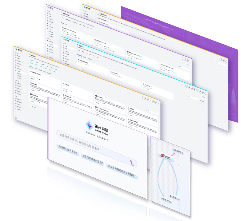 打通GenAI落地企业的算力、、、、模型、、知识、、应用四大要素,,综合解决GenAI工程在选、、、练、、用、、、管四大环节的问题,,,,旨在为企业的数智化转型提供全套的GenAI智能应用工程流水线。。。。J9.COM问学包括模型算力管理平台、、、企业私域知识管理平台、、AI应用工程平台三大模块,,,,为企业提供更先进、、、、更匹配的大模型,,,解决了算力上信创适配、、、融合调度、、、企业私域大模型高效推理训练问题,,,,同时解决了数据到知识的向量化以及场景应用的轻量化组装问题。。。。